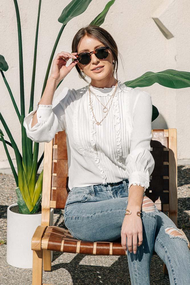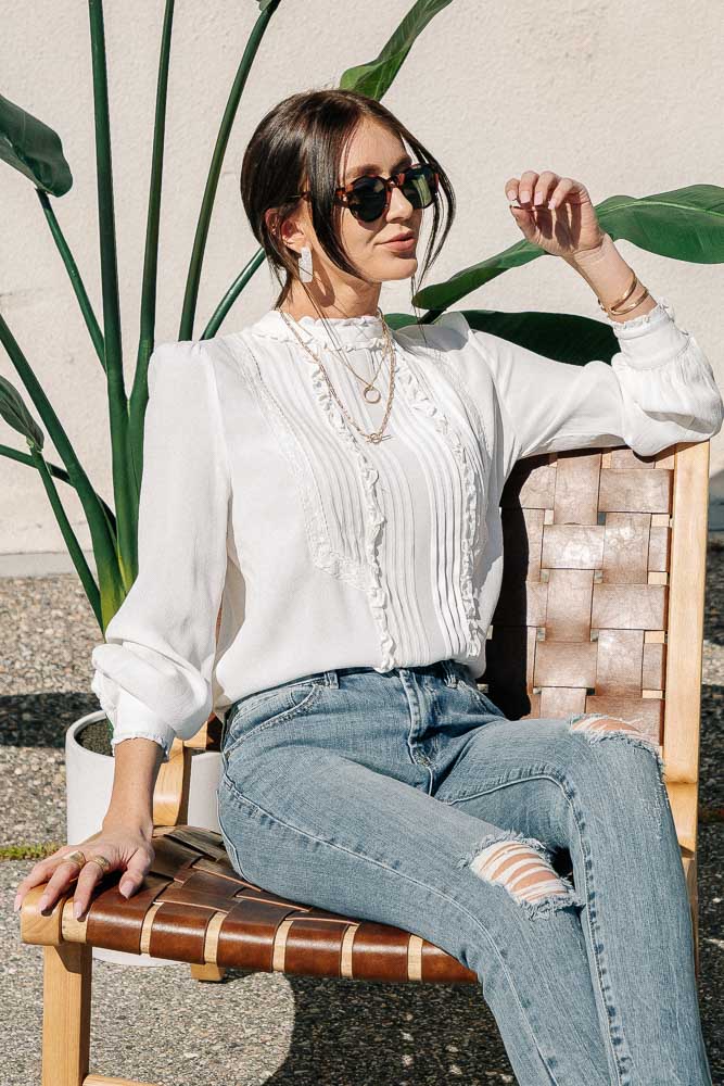 **Our online merchandise team measures each size by hand. For more specific information on the product, please feel free to live chat with a stylist.