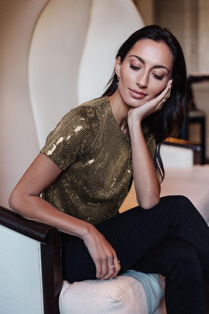 **Our online merchandise team measures each size by hand. For more specific information on the product, please feel free to live chat with a stylist.