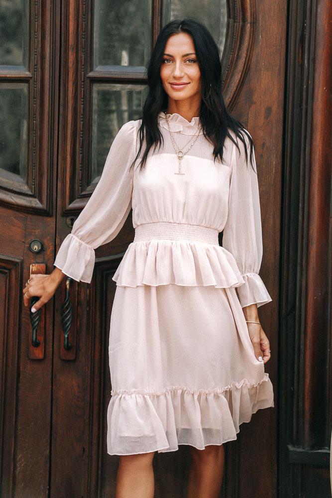 Crystal Ruffle Dress in Pink-FINAL SALE