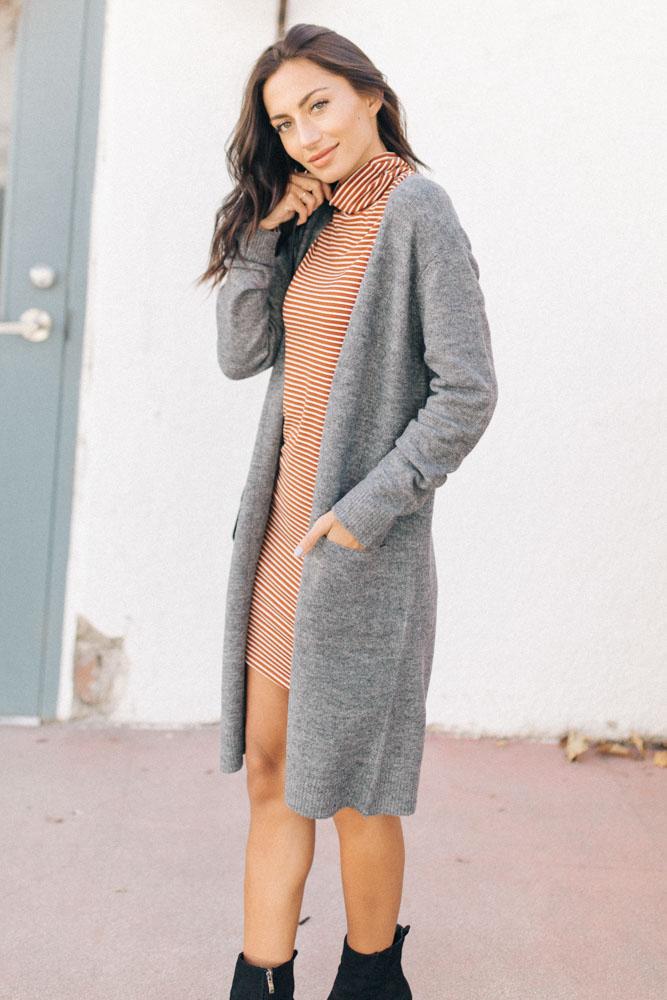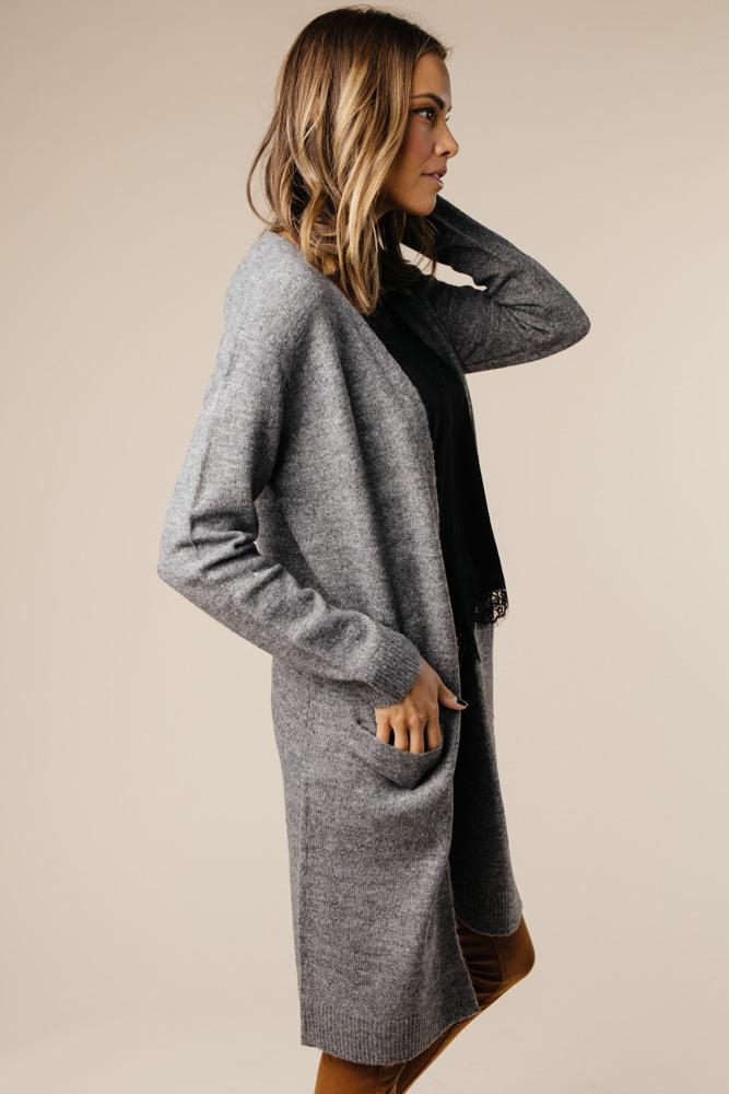 Stay warm with our Dakota Charcoal Cardigan. The soft material will keep you cozy and complete any outfit.