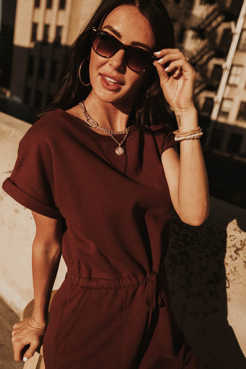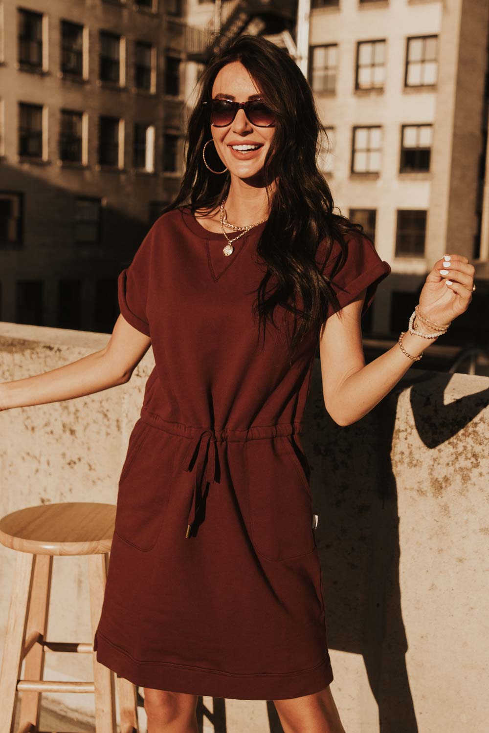 • Load image into Gallery viewer, Drawstring Sport Dress in Burgundy