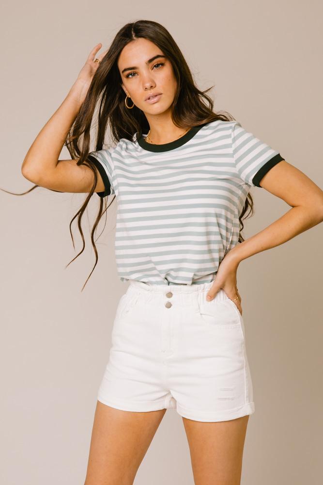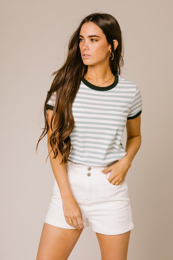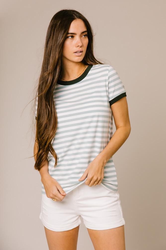 • Load image into Gallery viewer, Harlie Striped Tee in Sage