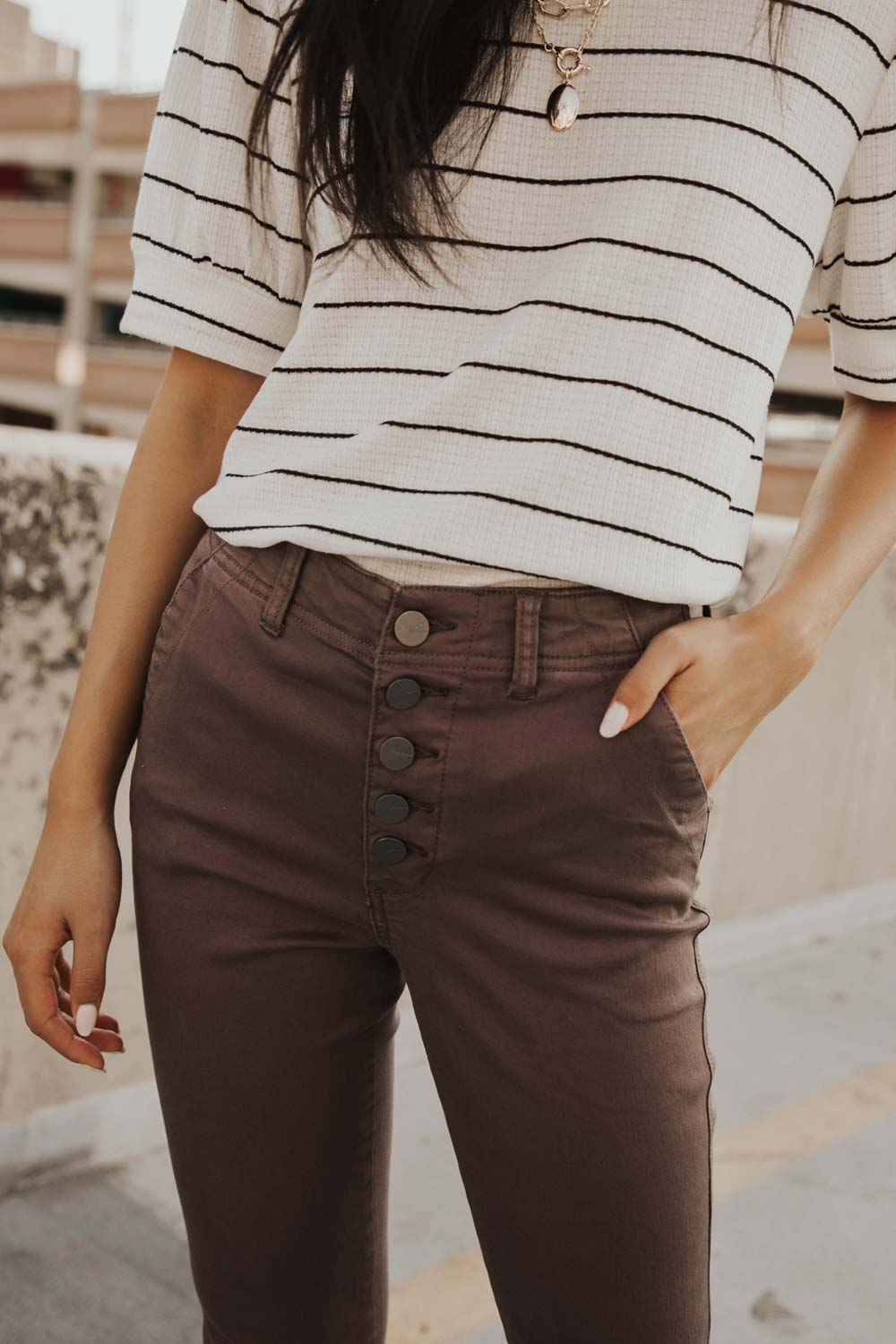 **Our online merchandise team measures each size by hand. For more specific information on the product, please feel free to live chat with a stylist.