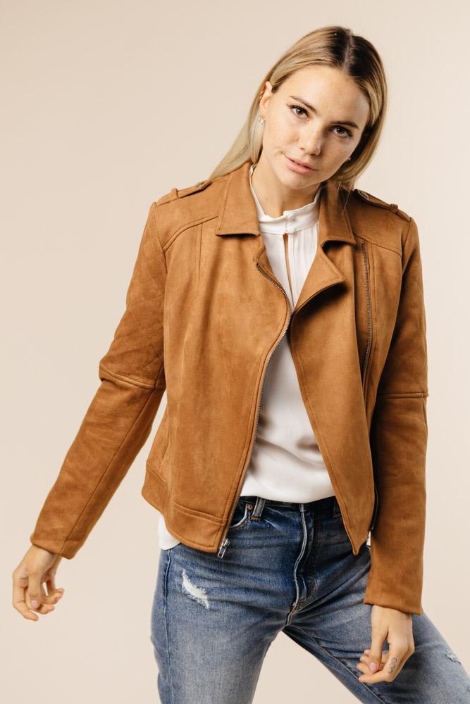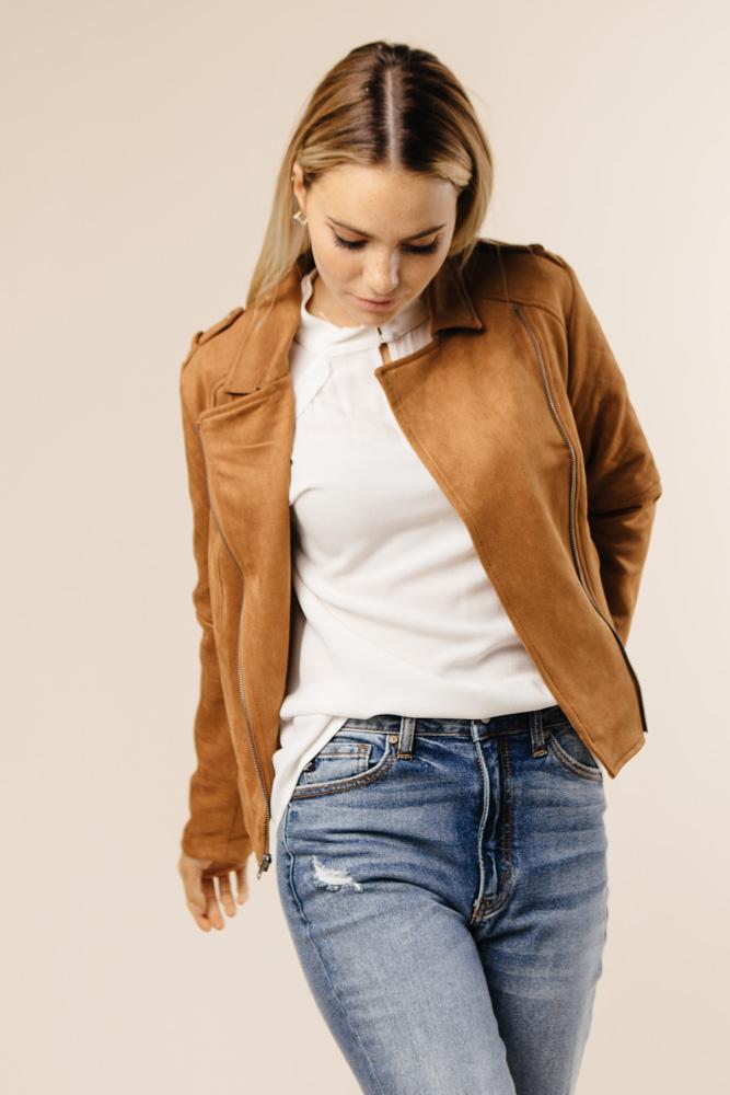 Jack has done it again with this timeless cropped jacket. It's comfortable, suede and so cute to layer with. We added a fun handkerchief scarf to it for some flare.