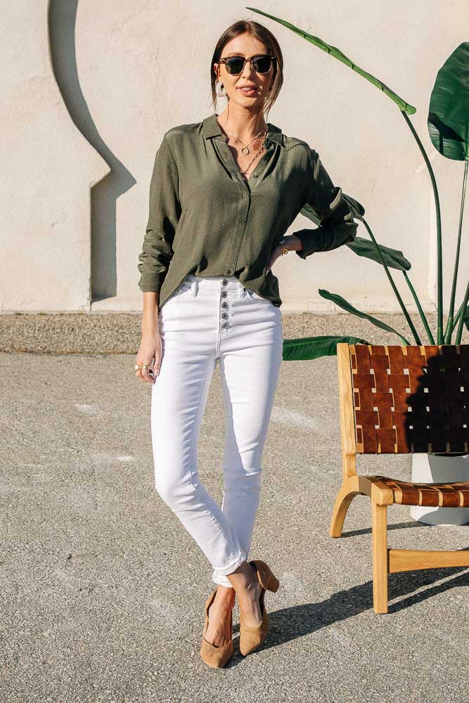 **Our online merchandise team measures each size by hand. For more specific information on the product, please feel free to live chat with a stylist.