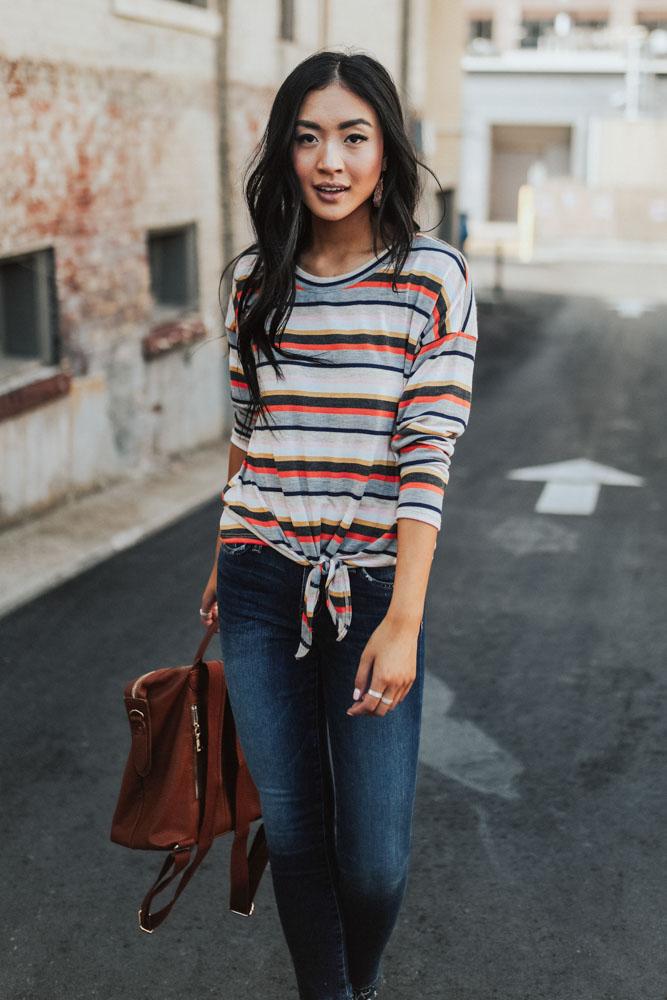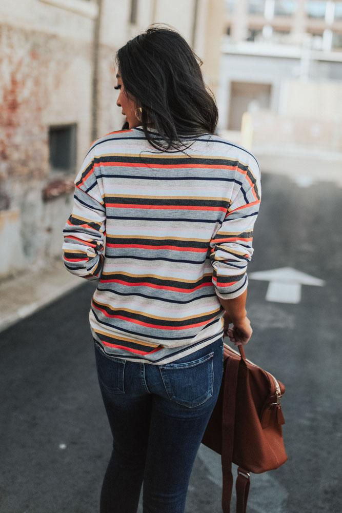 Getting ready for fall, but you still want those bright summer hues? This sweater-like long sleeve has your back. It's lightweight and easy to throw on with jeans, yoga pants, or some nice bottoms.