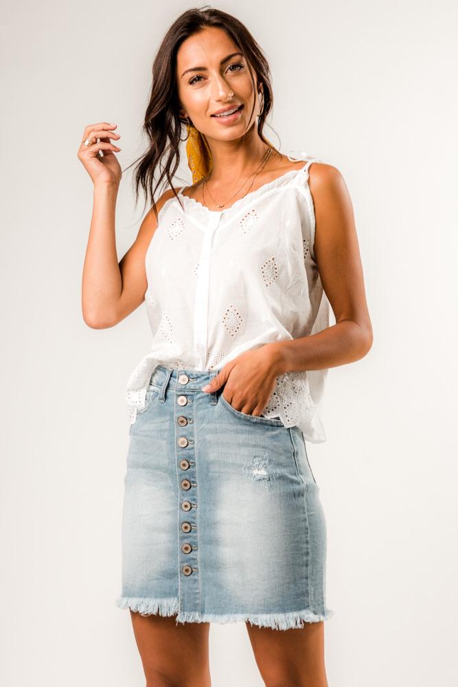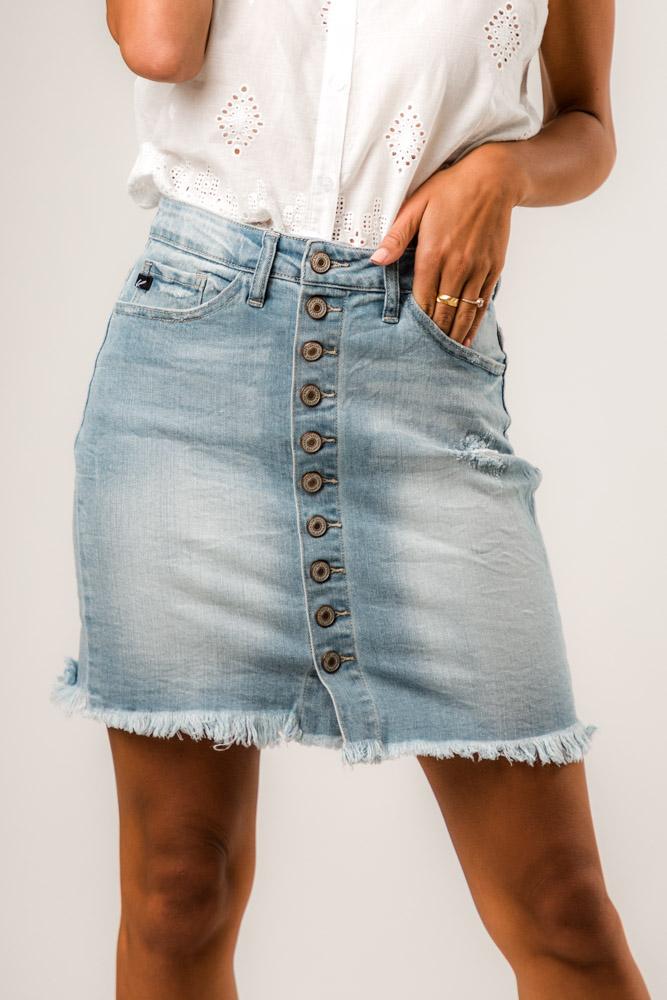 The Kancan Button Down Skirt is the perfect transition piece that can go anywhere with you! Pair with tights and a sweater for cold days, wear with a tee or as a cover up for warm sunny days.