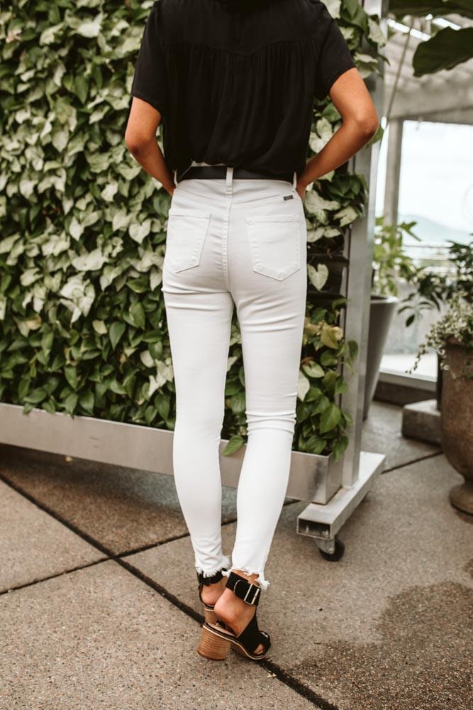Kancan Button High Raw Edge Denim in White