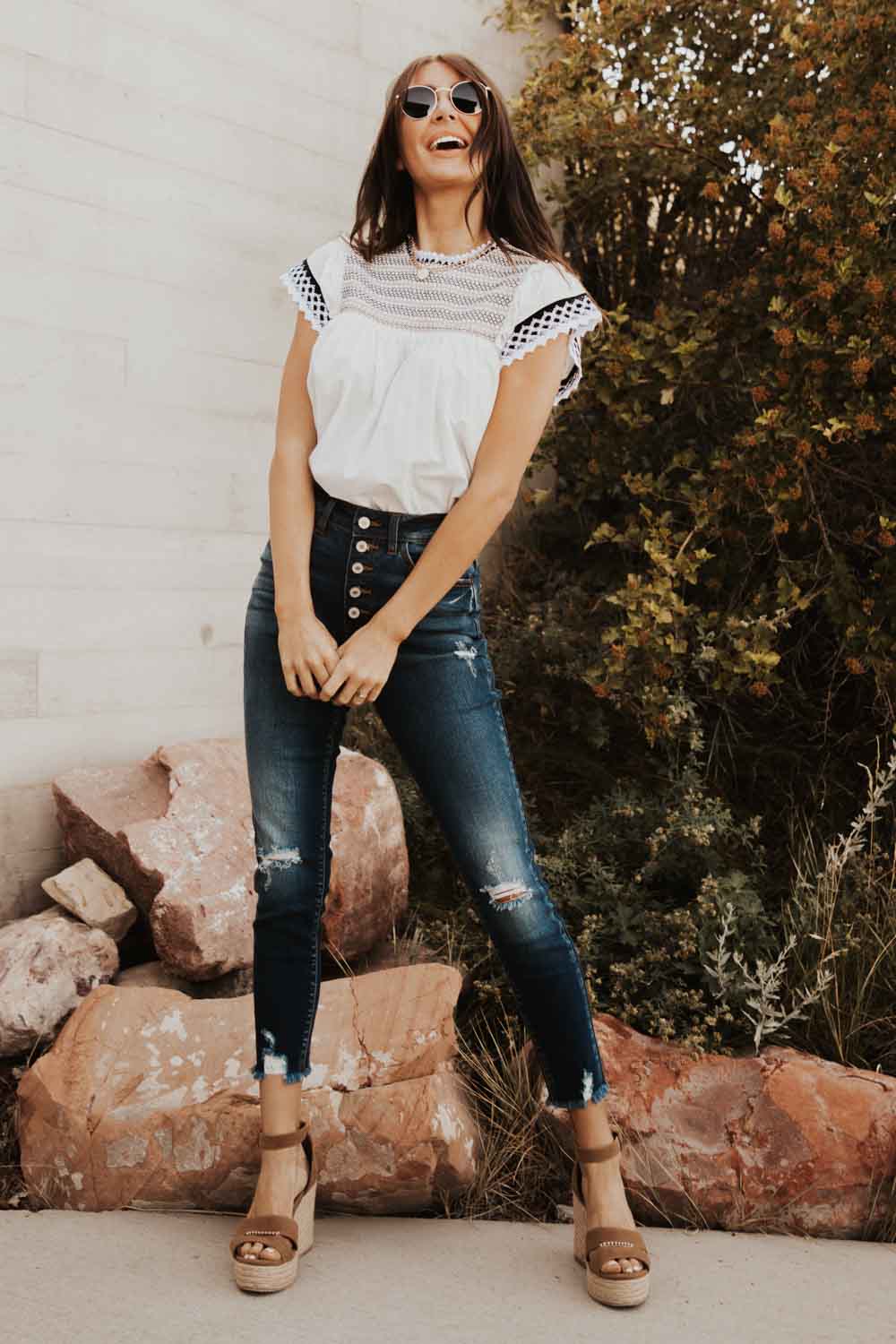 **Our online merchandise team measures each size by hand. For more specific information on the product, please feel free to live chat with a stylist.